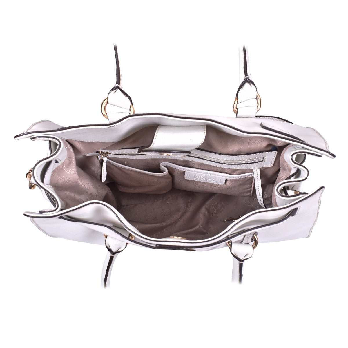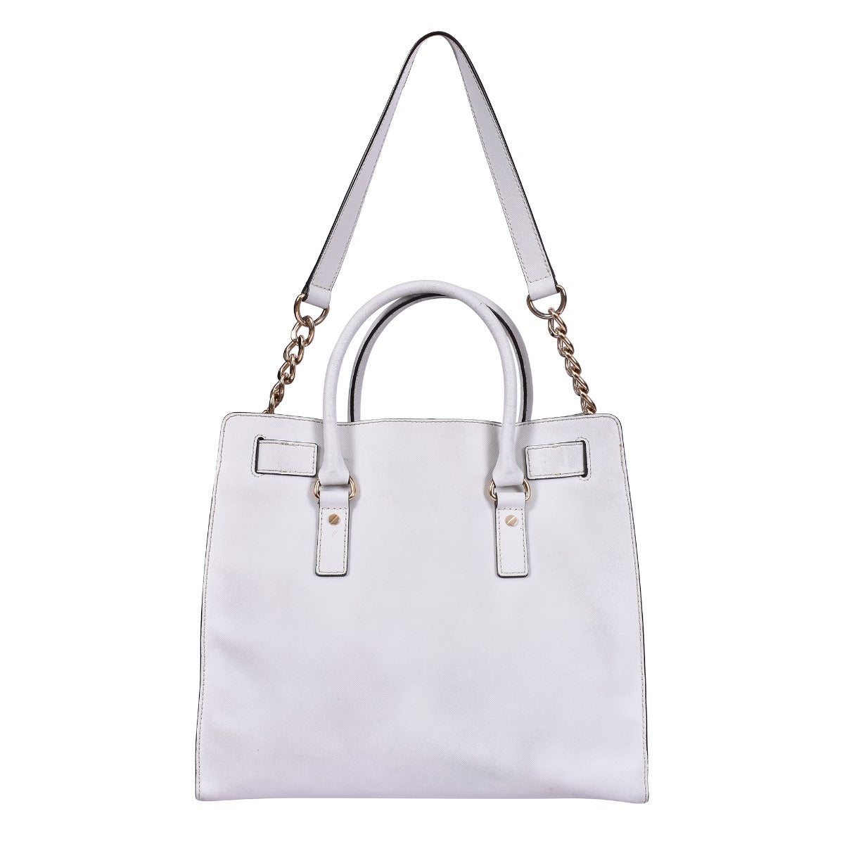 MICHAEL KORS HAMILTON SAFFIANO BAG comes in this stunning White color. It falls under our Pristine Condition category. No visible wear & tear can be seen.