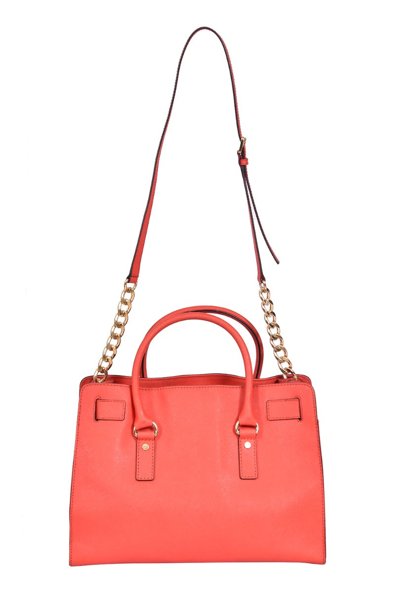 MICHEAL KORS HAMILTON LARGE EW SATCHEL SAFFIANO LEATHER BAG comes in this Stunning Redcolor .It falls under our Pristine Condition Category. No visible wear and tear or fading can be seen.\