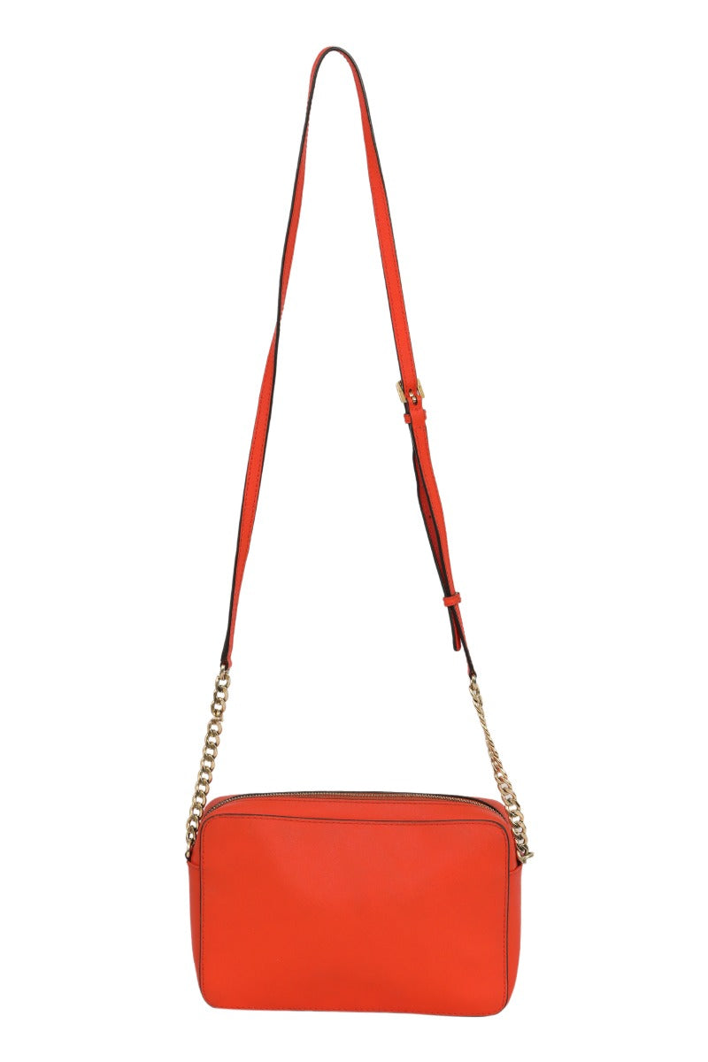 Michael Kors Jet Set Orange Camera Sling Bag comes in this Stunning Orange color .It falls under our Pristine Condition Category. No visible wear and tear or fading can be seen.