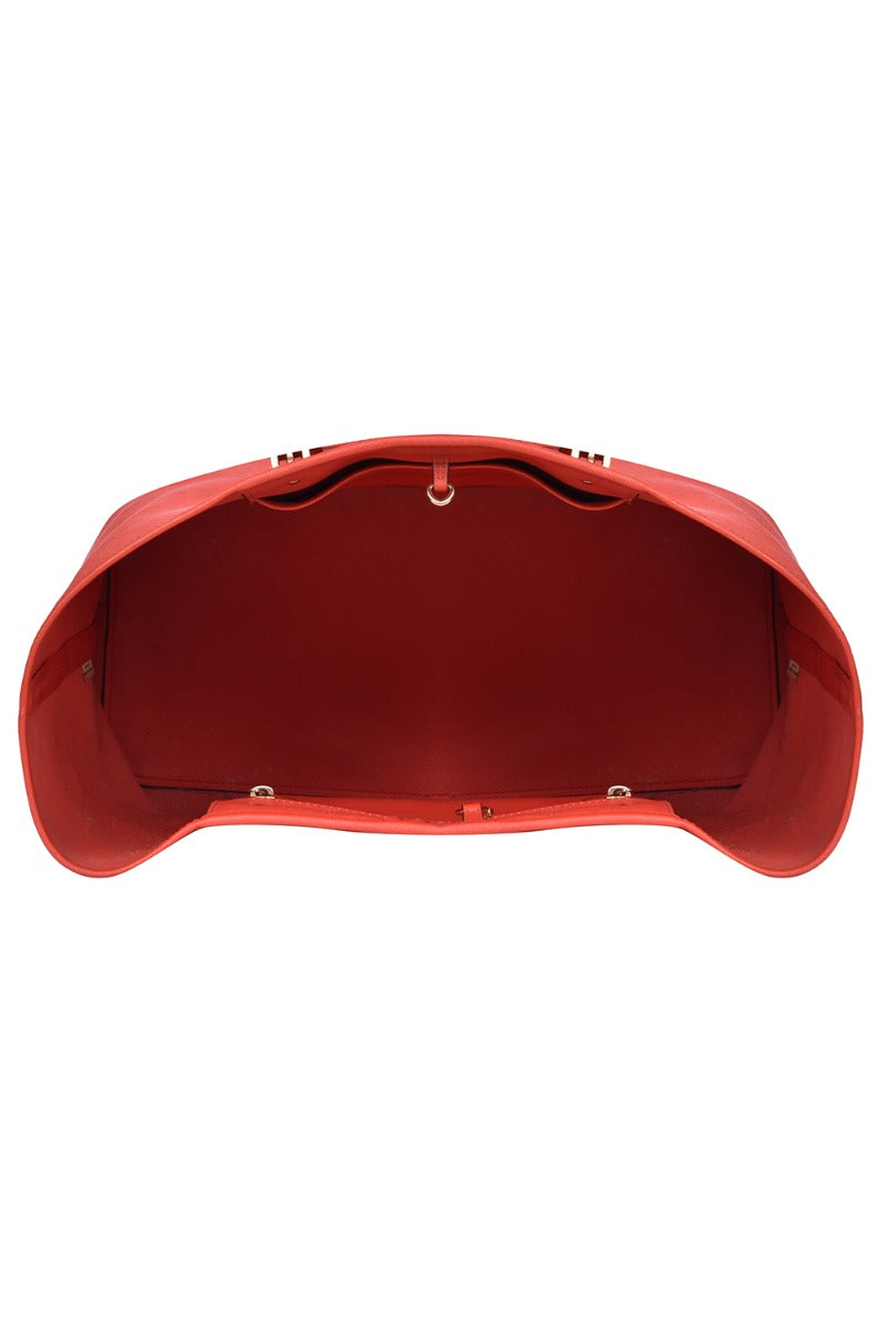 Michael Kors Orange Tote Bag comes in this Stunning Red color .It falls under our Pristine Category. No visible wear and tear or fading can be seen.