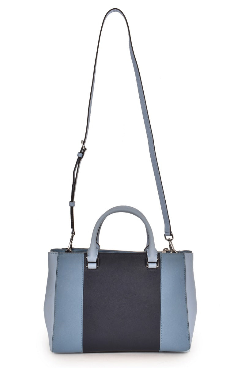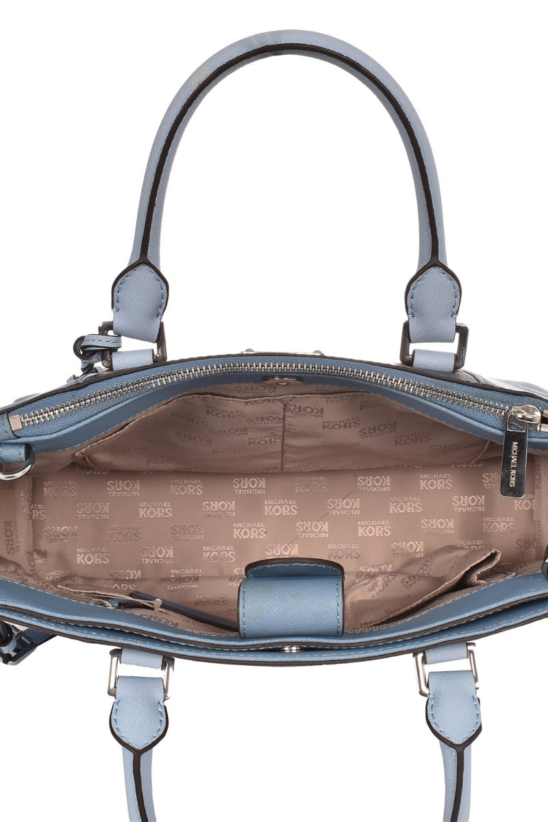 MICHAEL KORS KELLEN SAFFAINO SATCHEL BAG comes in this stunning Blue color .It falls under our Like New Condition Category. No visible wear and tear or fading can be seen.