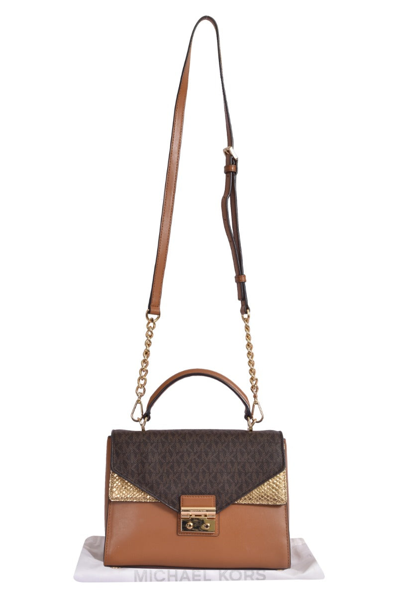 Michael Kors Leather Sloan Satchel Handbag comes in this Stunning Browncolor .It falls under our Pristine Condition Category. No visible wear and tear or fading can be seen.