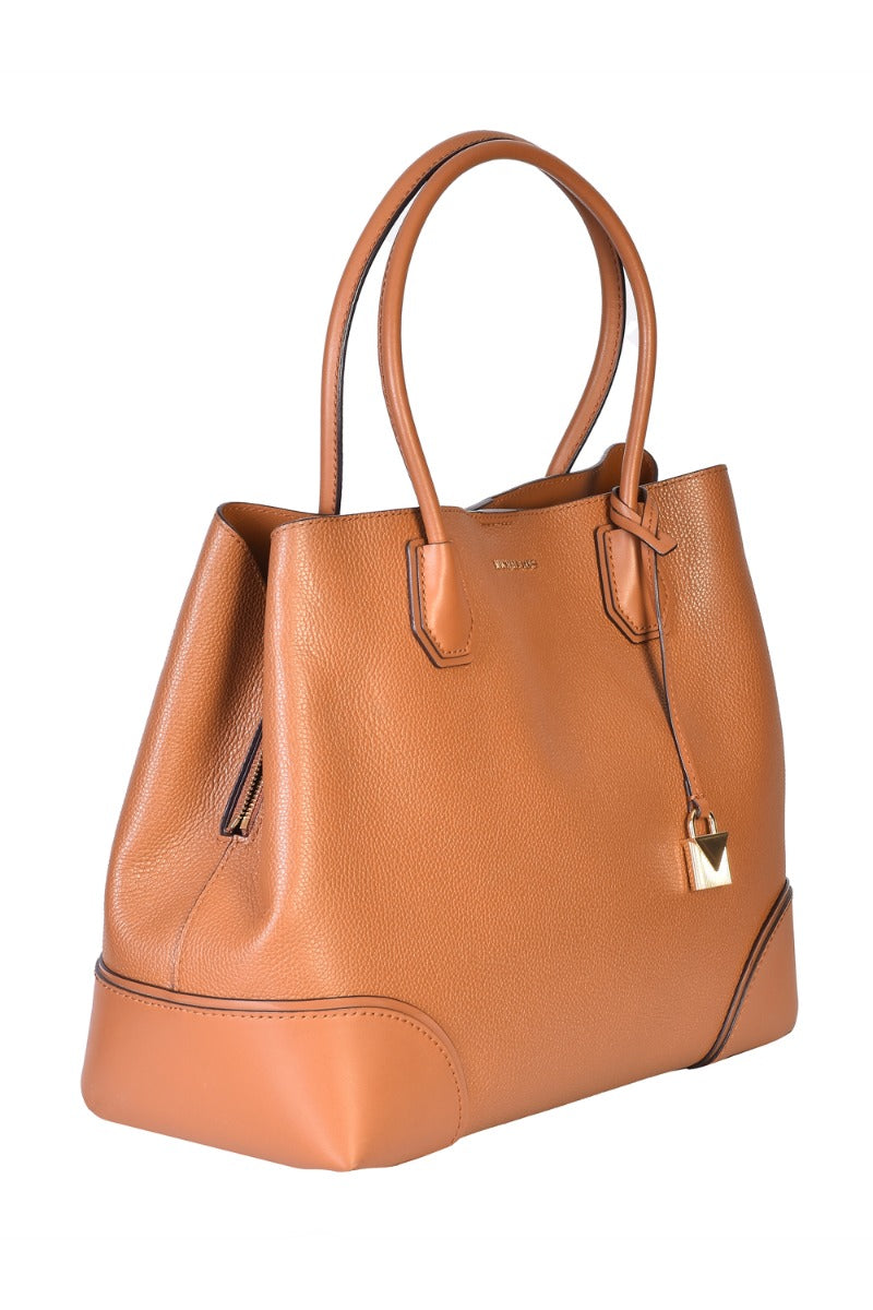 MICHAEL KORS MEDIUM MERCER GALLERY TOTE BAG comes in this Stunning Brown color .It falls under our Never been used Condition Category. No visible wear and tear or fading can be seen.