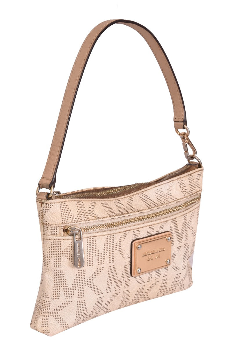 Michael Kors Monogram White Pochette comes in this Stunning Off-Whitecolor .It falls under our Good Condition Category. No visible wear and tear or fading can be seen.