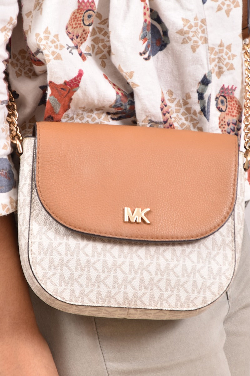 Michael Kors Mott Logo Dome Crossbody Bag comes in this Stunning Beige color .It falls under our Never Been Used Condition Category. No visible wear and tear or fading can be seen.