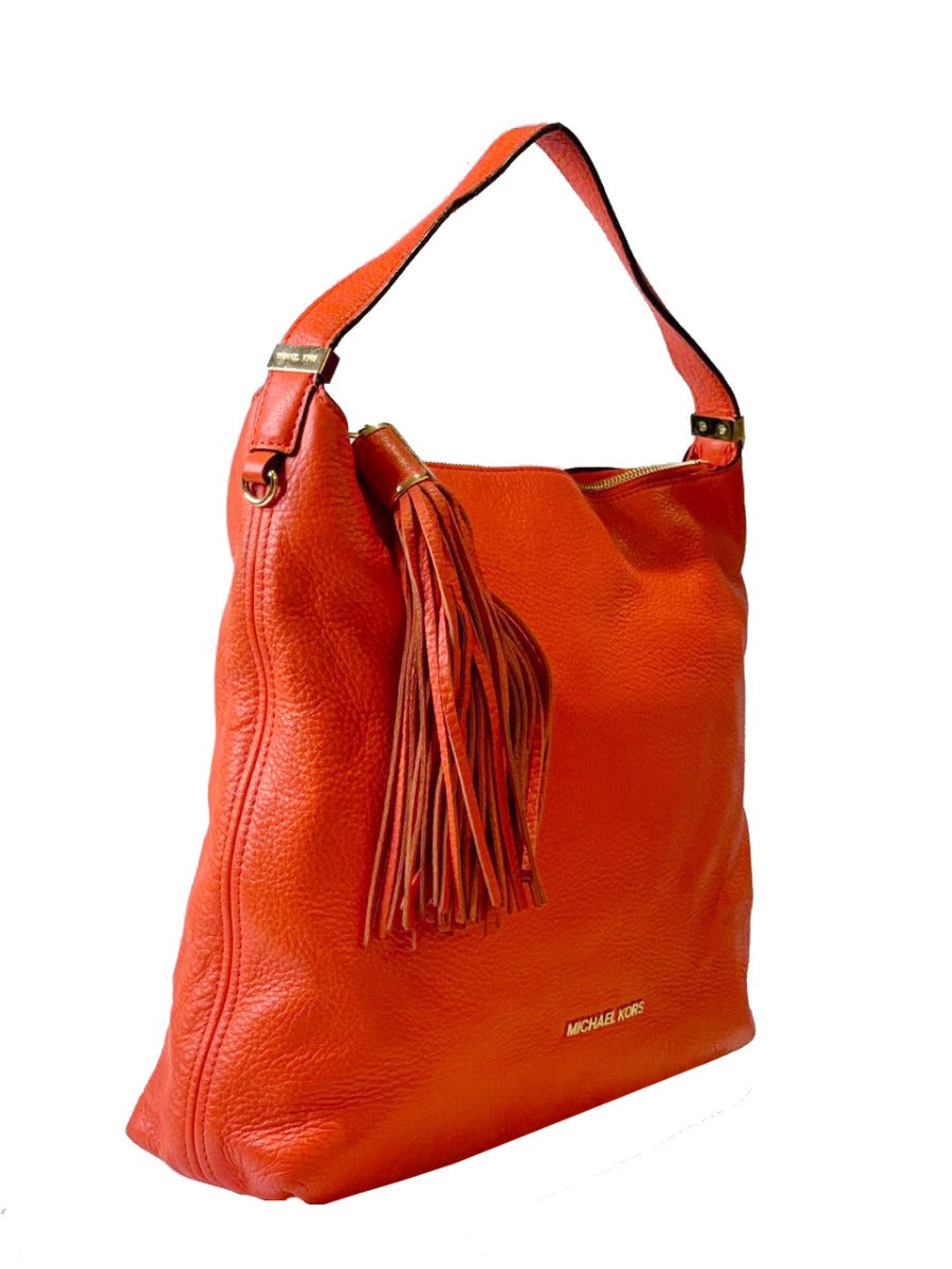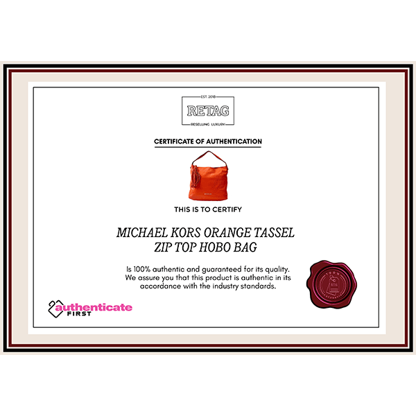 Michael Kors Orange Tassel Zip Top Hobo Bag in this Stunning orange color. It falls under our Good condition category. No visible wear & tear or fading can be seen.