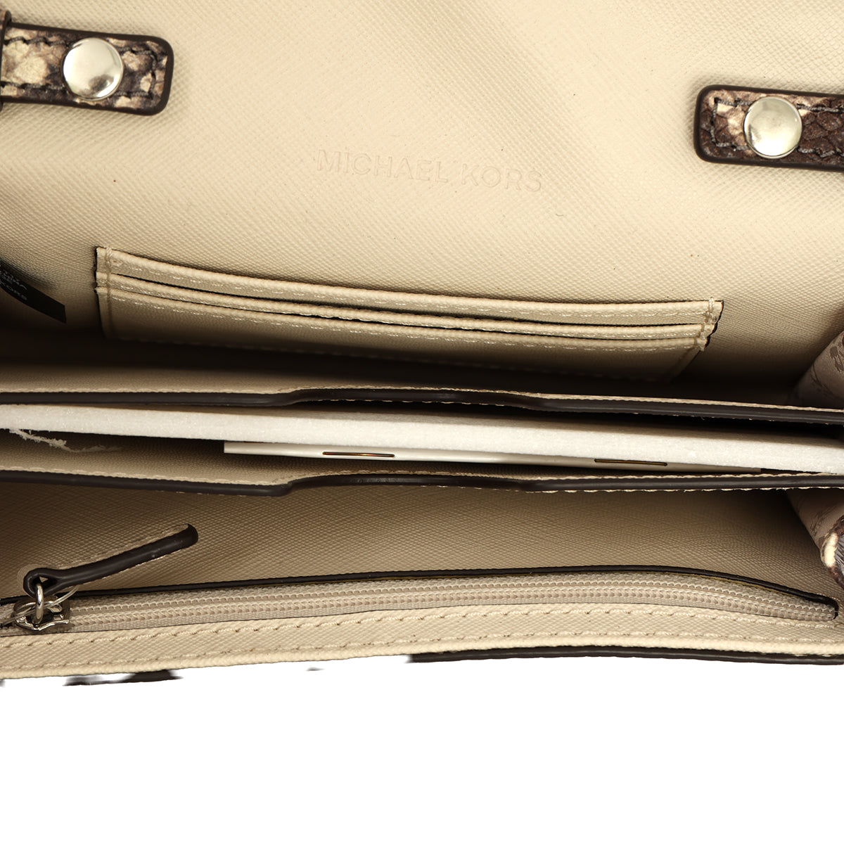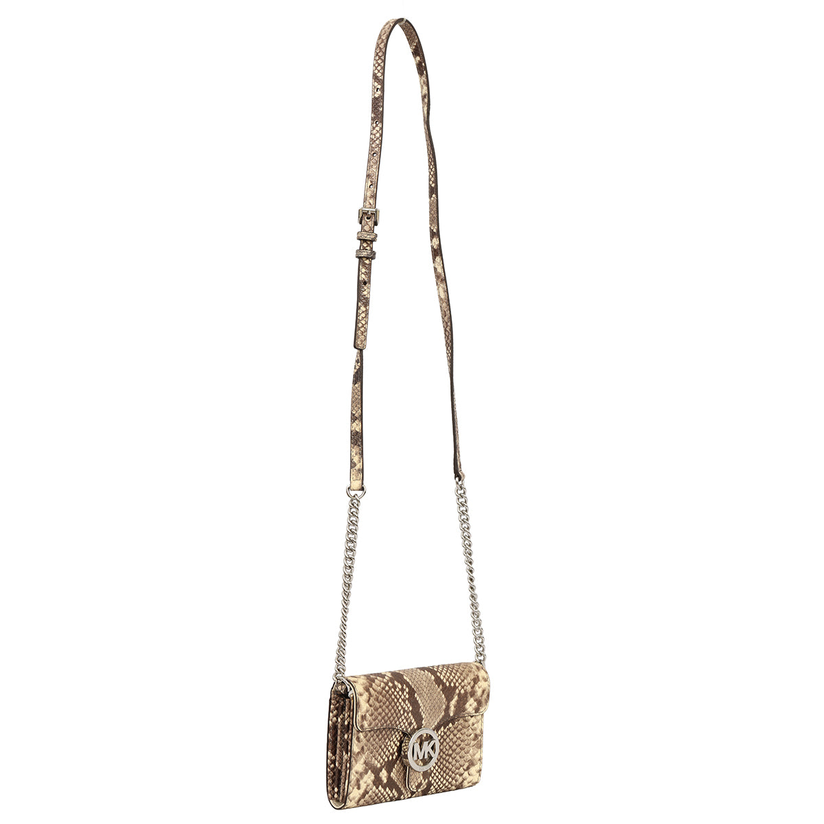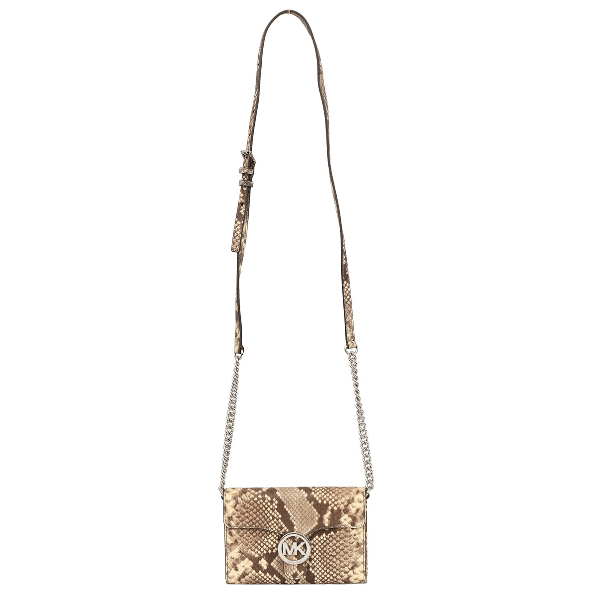 Michael Kors Python Embossed Vana Crossbody Bag comes in this stunning brown color. It falls under our Pristine Condition Category.
