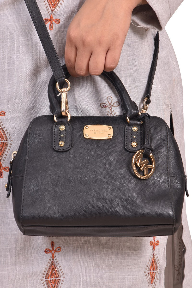 Michael Kors Saffiano Leather Mini Satchel Bagcomes in this Stunning Blackcolor .It falls under our Pristine Condition Category. No visible wear and tear or fading can be seen