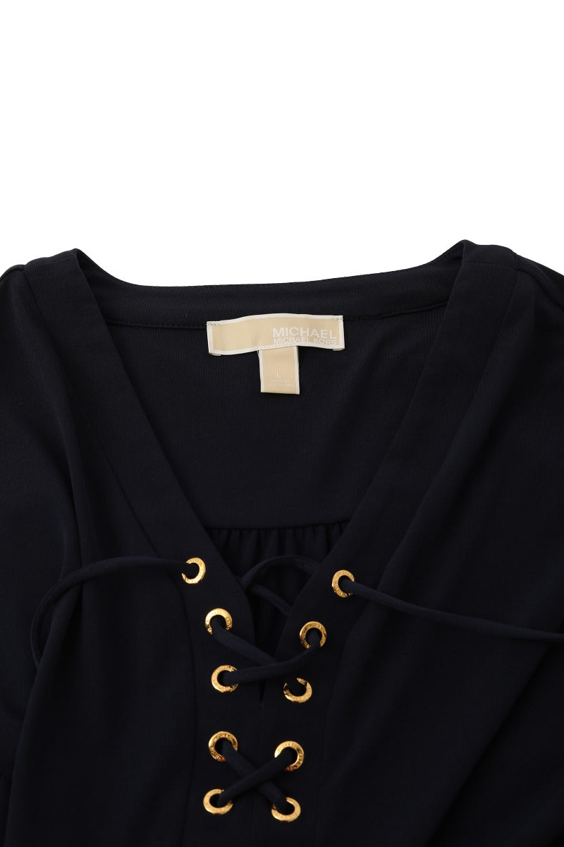 Michael Kors Size L Tie Around Navy Blue Dress comes in this Stunning Navy Blue color. It falls under our Pristine Condition Category. No visible wear and tear or fading can be seen