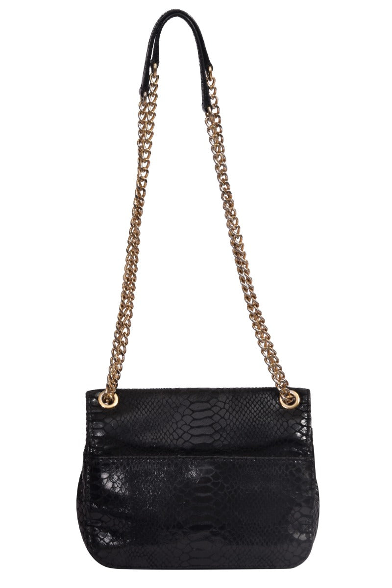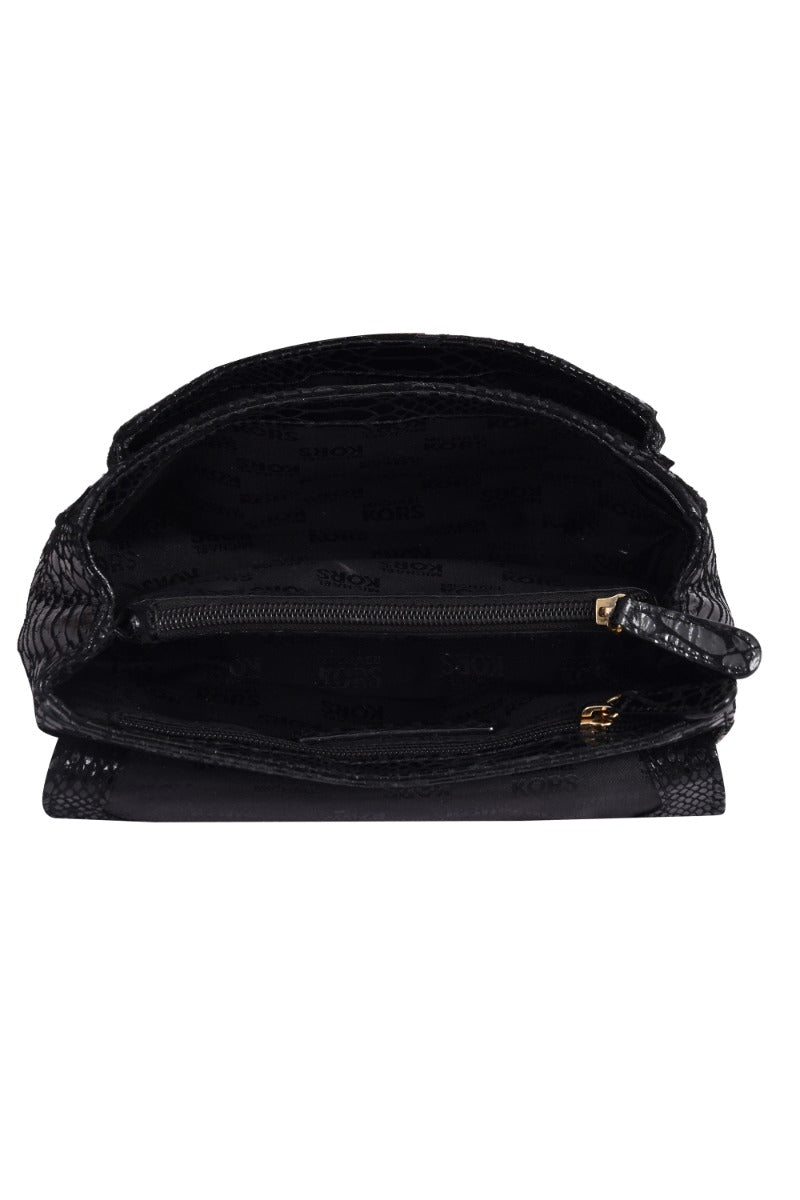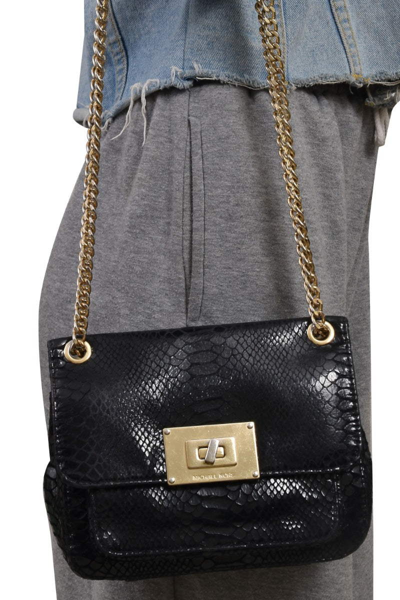 Michael Kors Sloan Snake Embossed Flap Crossbody Bag comes in this Stunning Blackcolor .It falls under our Good Condition Category. No visible wear and tear or fading can be seen.