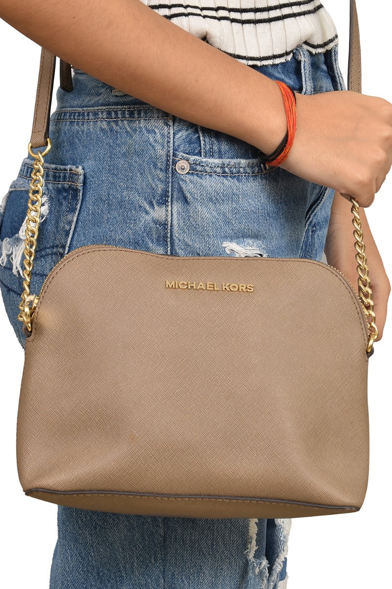 Michael Kors Textured Sling Bagcomes in this Stunning BROWN color .It falls under our PRISTINE Condition Category. No visible wear and tear or fading can be seen.