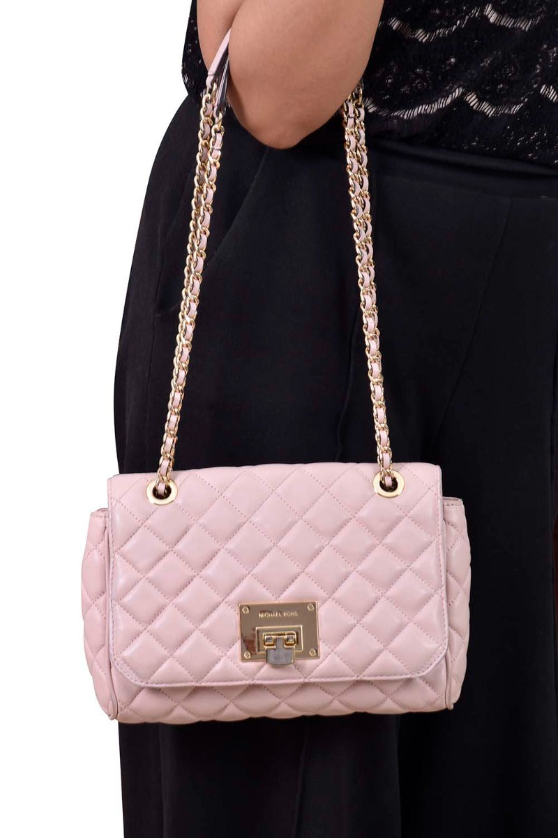 MICHAEL KORS VIVIANNE MEDIUMSHOULDER BAGcomes in this Stunning Blush Pink color .It falls under our Pristine Condition Category. No visible wear and tear or fading can be seen.