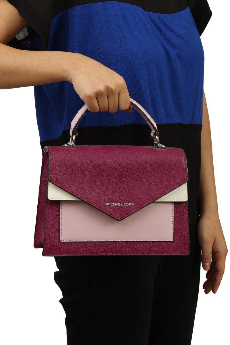 MICHAEL KORS CROSSGRAIN LEATHER SATCHEL BAGcomes in this Stunning Burgundy color .It falls under our Pristine Condition Category. No visible wear and tear or fading can be seen.