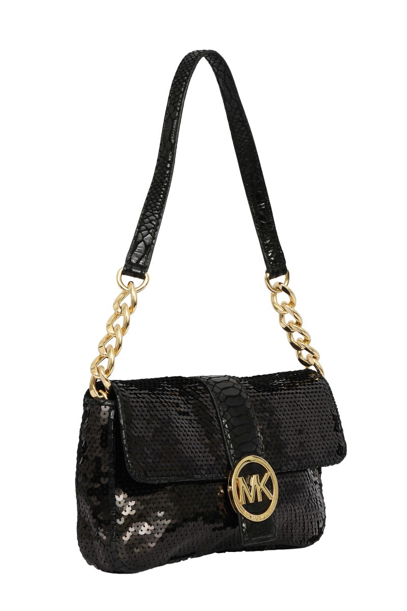 MICHEAL KORS BLACK SEQUINS AND PYTHON EFFECT LEATHER FLAP SHOULDER BAGcomes in this Stunning Blackcolor .It falls under our Pristine Condition Category. No visible wear and tear or fading can be seen.