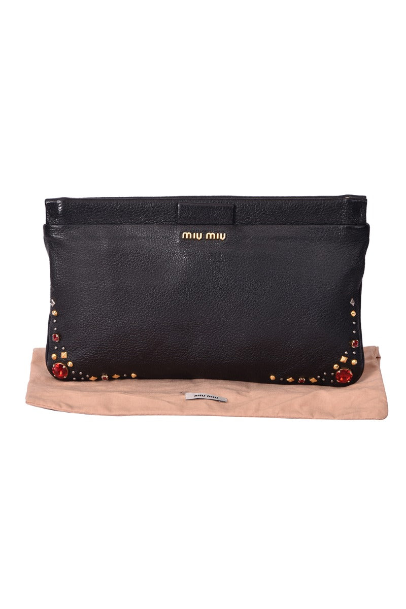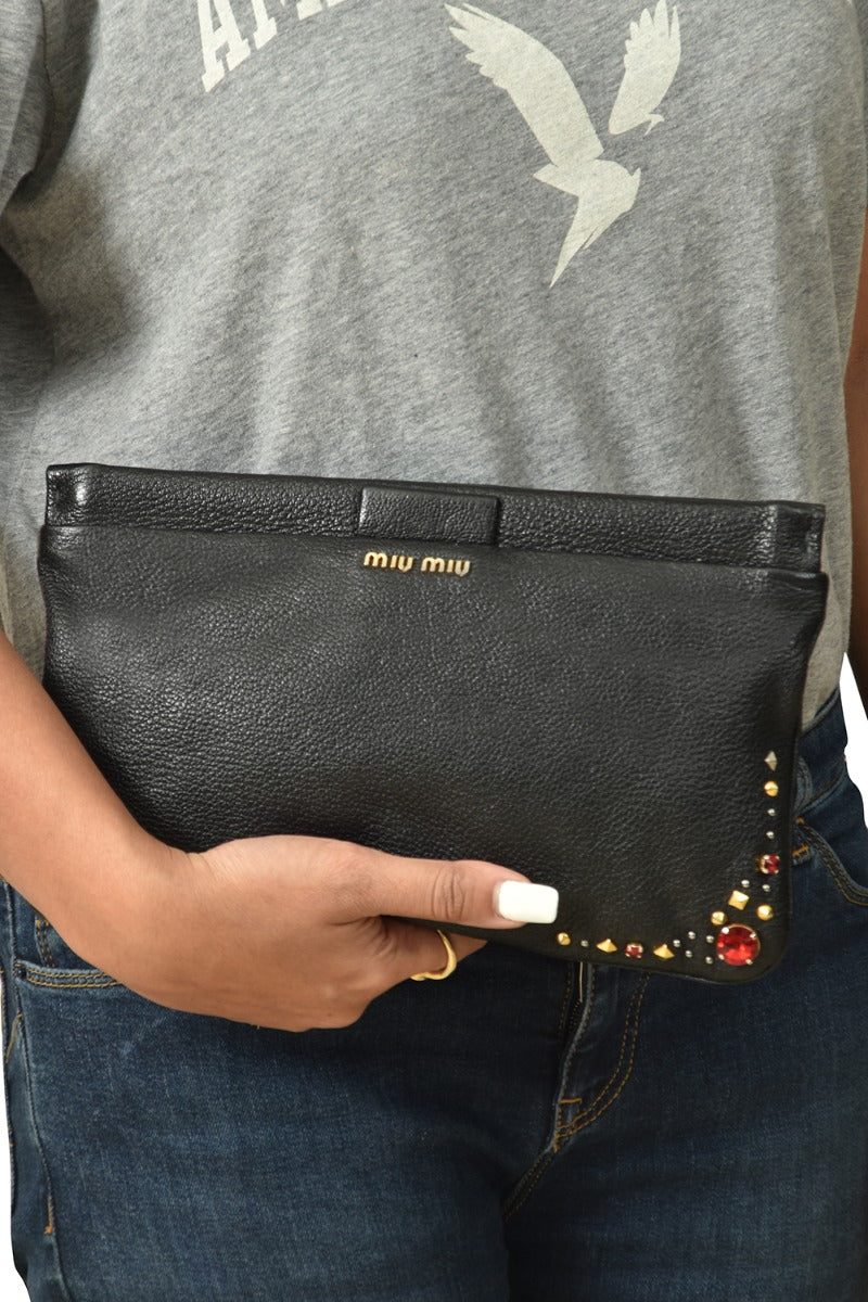 MiuMiu Studded Clutch comes in this Stunning Blackcolor .It falls under our Never Been Used Condition Category. No visible wear and tear or fading can be seen.