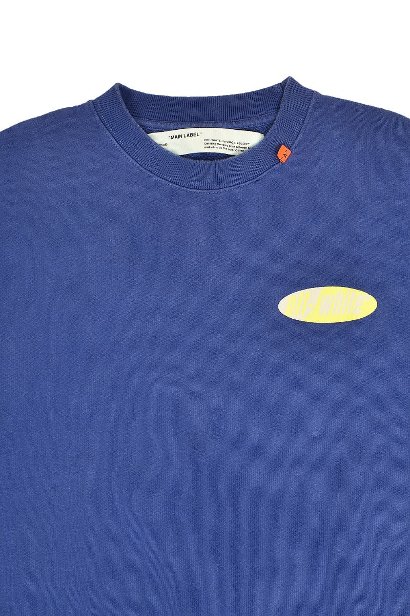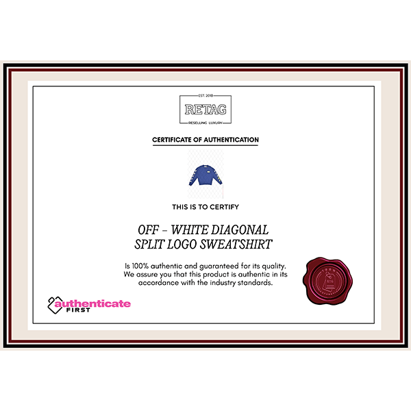 OFF WHITE DIAGONAL SPLIT LOGO SWEATSHIRT comes in this Stunning Blue color. It falls under our Good Condition Category. No visible wear and tear or fading can be seen.