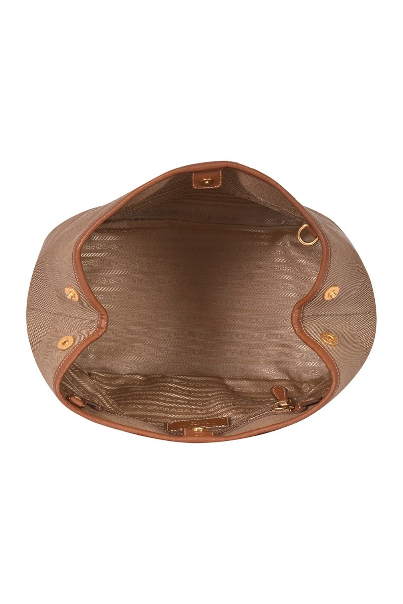 Prada Bauletto Jacquard Brown Canvas Handbagcomes in this Stunning Brown color .It falls under our Pristine Condition Category. No visible wear and tear or fading can be see