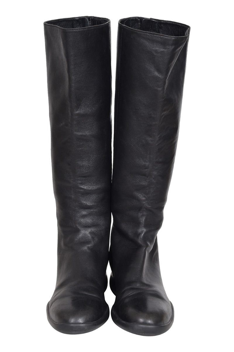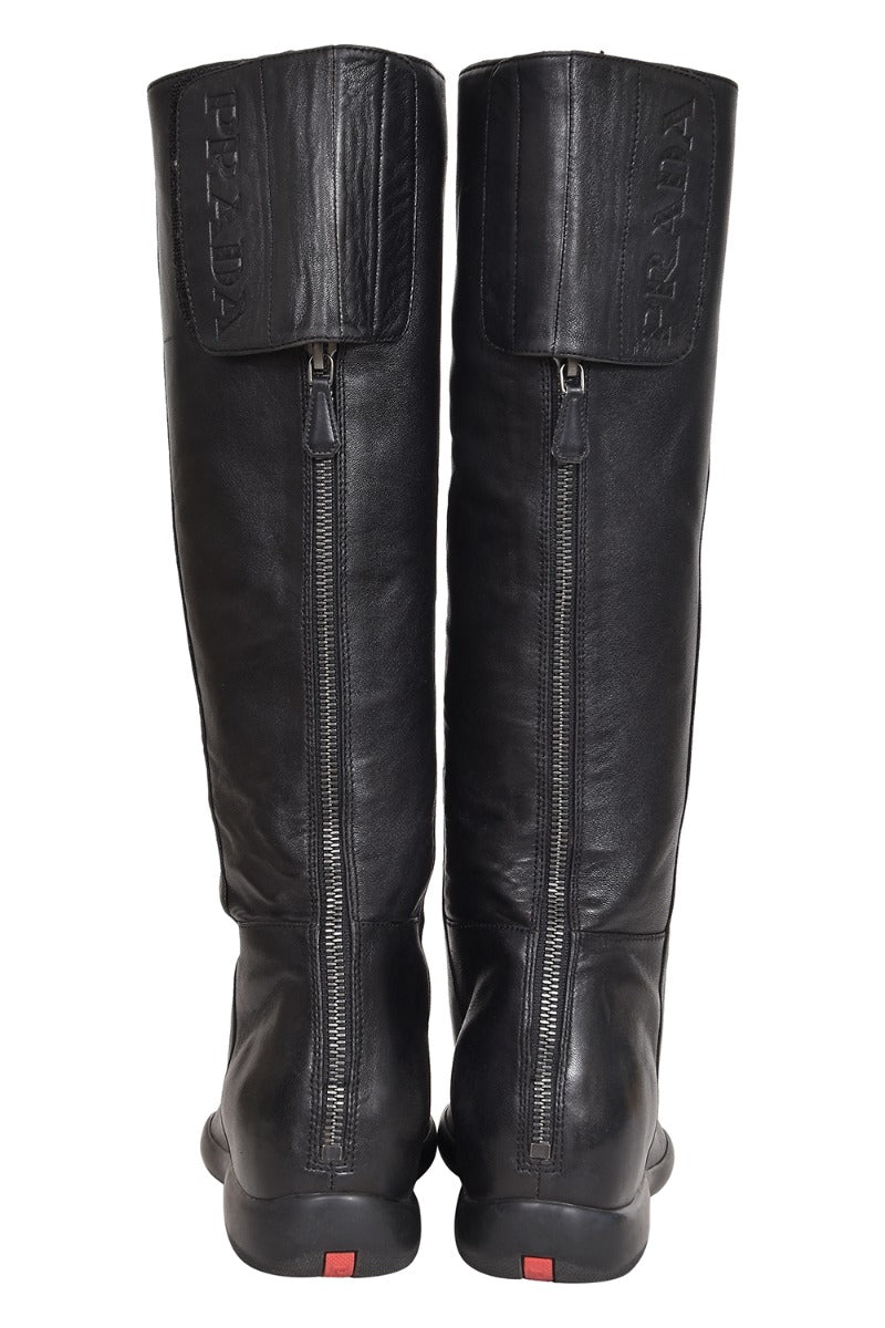 Prada Black Leather Knee-High Boots comes in this stunning Black color. It falls under our Pristine Condition Category. No visible wear and tear or fading can be seen