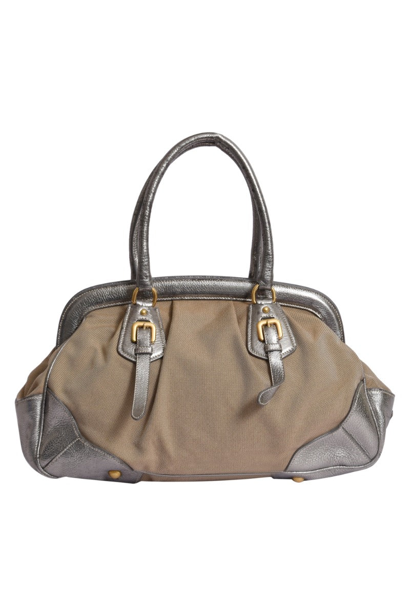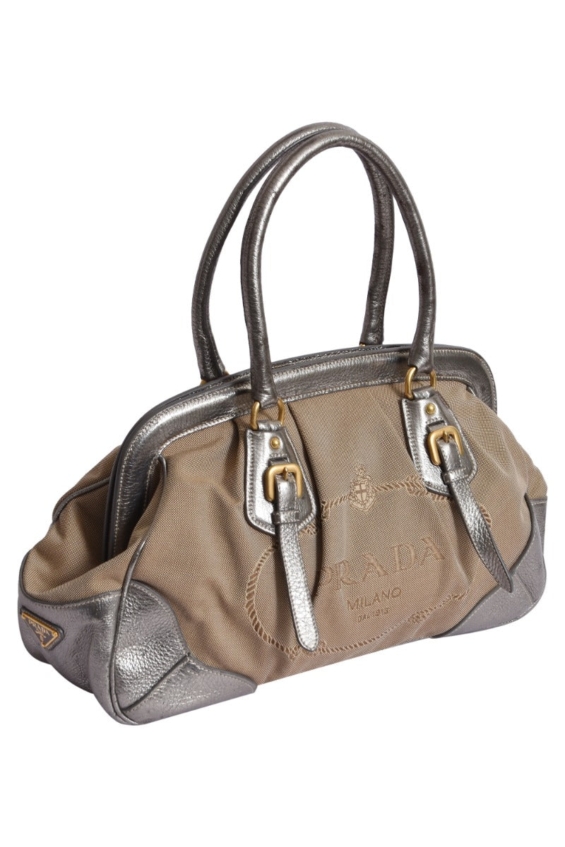 Prada Brown/Beige Canapa Logo Frame Handbag comes in this Stunning Silvercolor .It falls under our Pristine Condition Category. No visible wear and tear or fading can be seen.