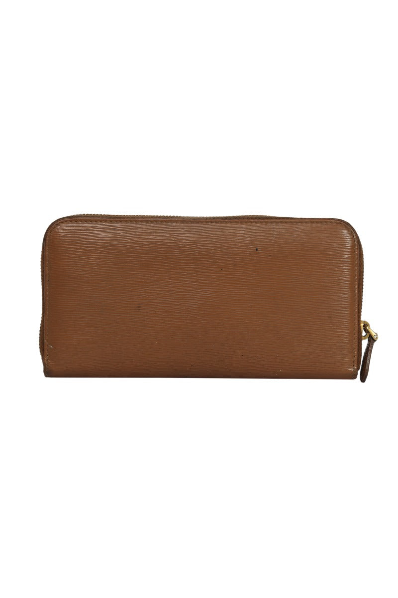 Prada Caramel Saffiano Leather Zip Around Wallet comes in this Stunning Brown color .It falls under our Pristine Condition Category. No visible wear and tear or fading can be seen.