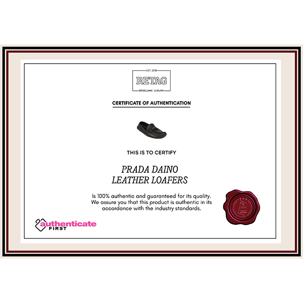 PRADA DAINO LEATHER LOAFERS comes in this stunning Black color. It falls under our Pristine Condition Category. No visible wear and tear or fading can be seen