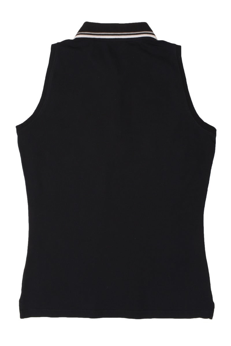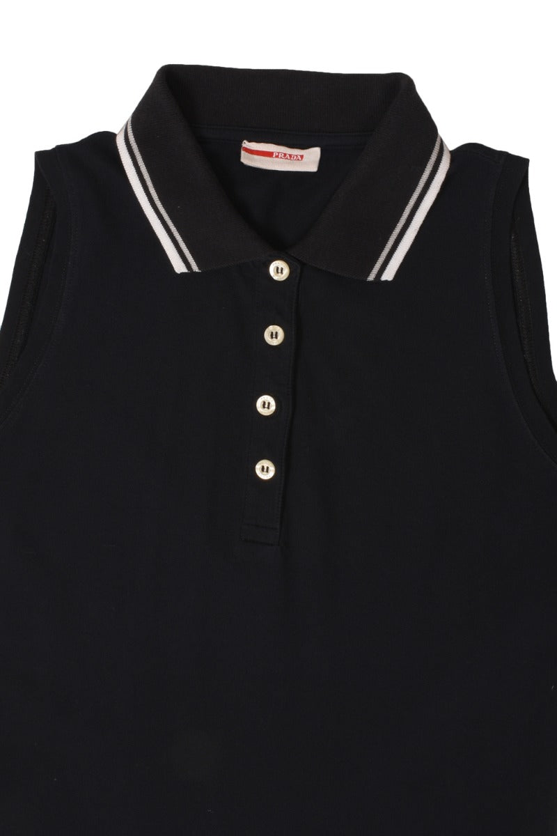 PRADA POLO SLEEVELESS PIQUE SHIRT comes in this Stunning Black color. It falls under our Pristine Condition Category. No visible wear and tear or fading can be seen.