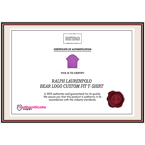 RALPH LAUREN POLO BEAR LOGO CUSTOM FIT T-SHIRT comes in thisStunningPurple Color.It falls under our New With Tags Condition Category. No visible wear and tear or fading can be seen.
