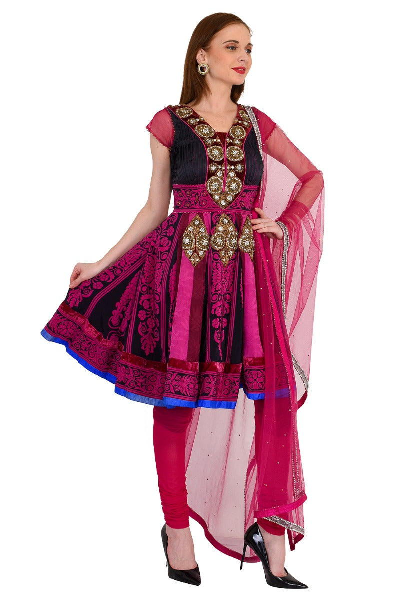 RIMPLE & HARPREET NARULA PRINTED SHORT ANARKALI comes in this Stunning Wine color. It falls under our Pristine Condition Category. No visible wear and tear or fading can be seen.