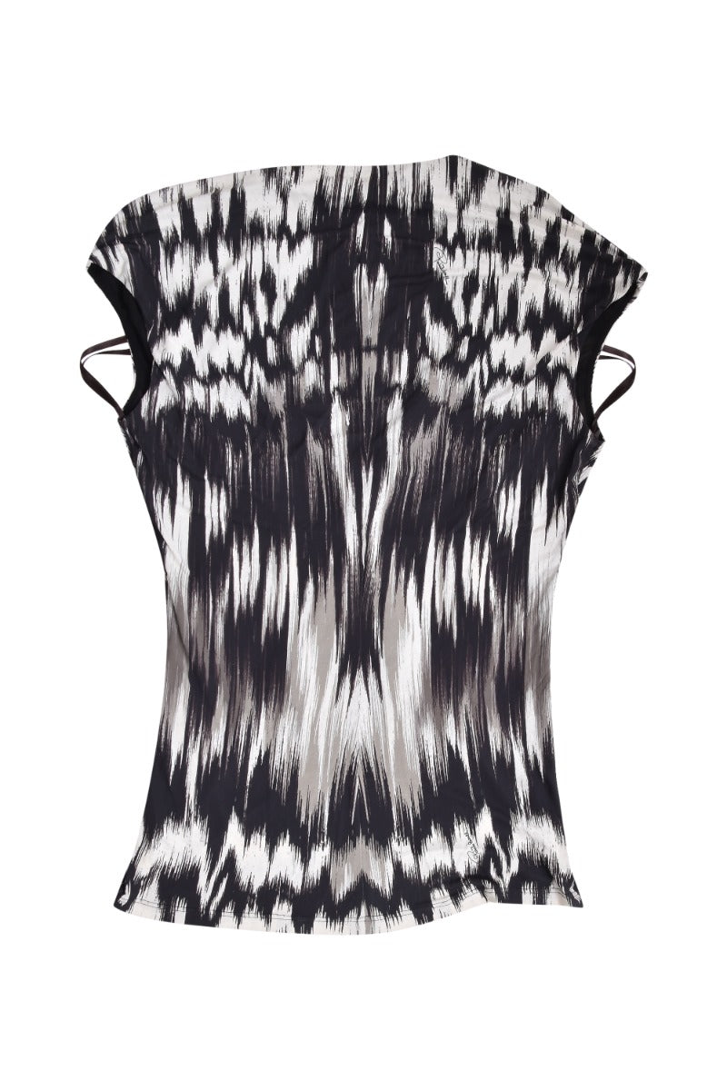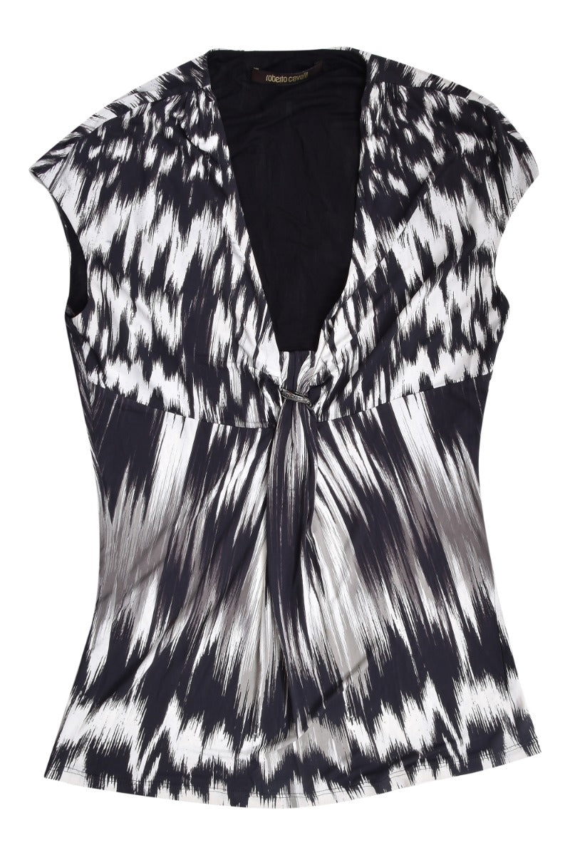 Roberto Cavalli Abstract Silk Top comes in thisStunning Beige color. It falls under our Pristine Condition Category. No visible wear and tear or fading can be seen