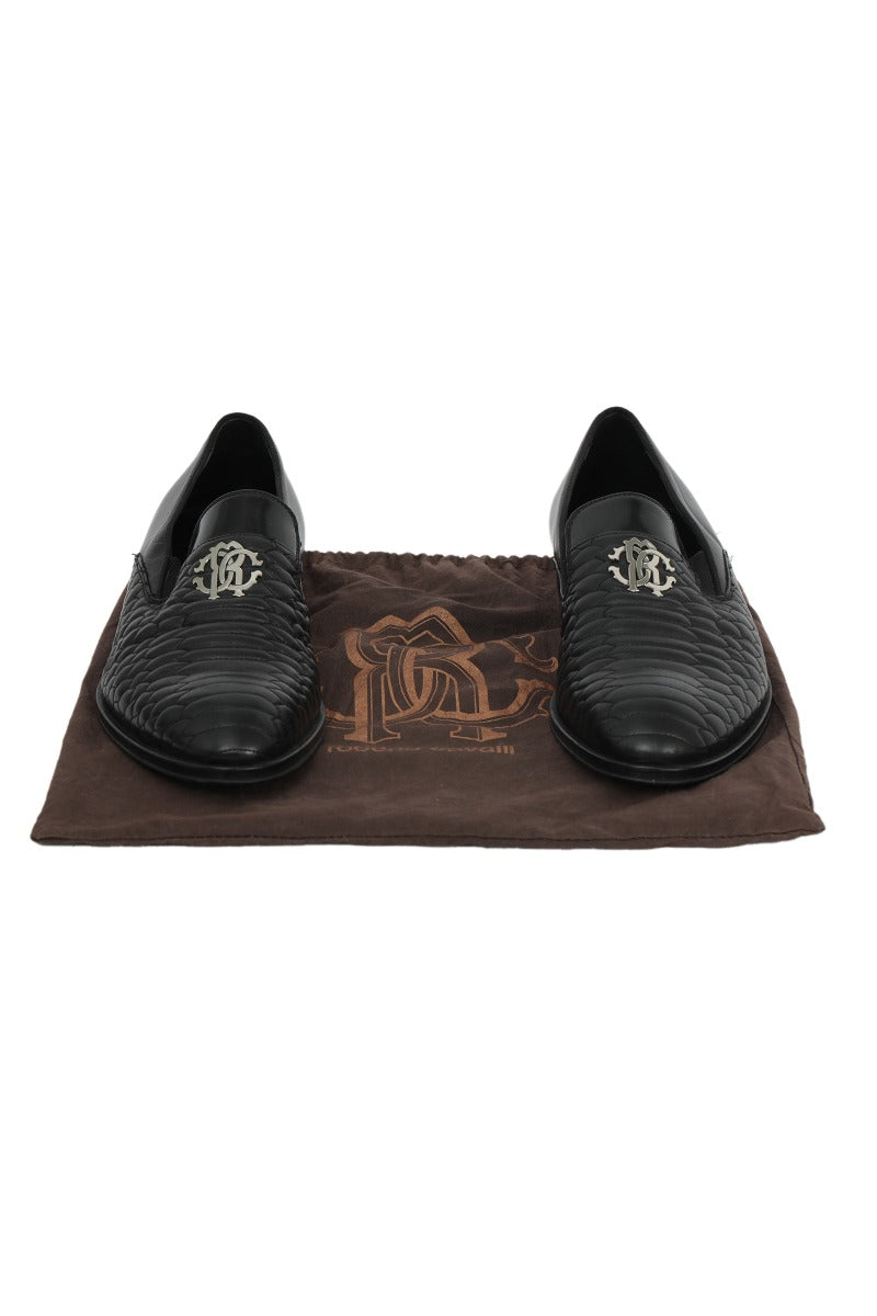 Roberto Cavalli EU 40 Python Embossed Loafers comesin this stunning BLACK color. It falls under our LIKE NEW Condition Category. No visible wear and tear or fading can be seen.