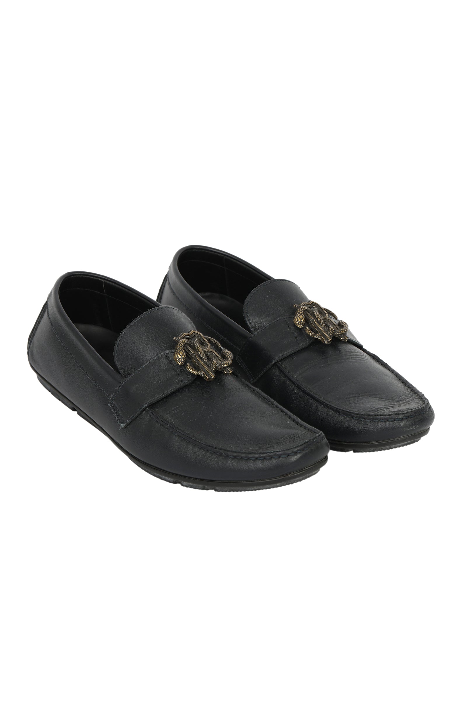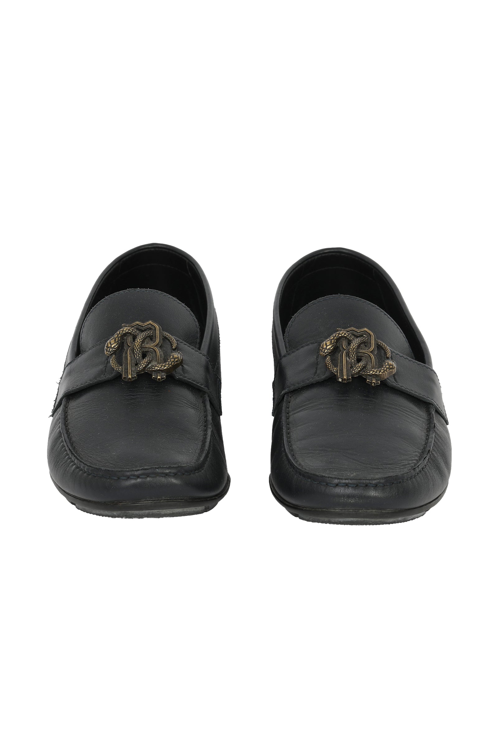 Roberto Cavalli EU 43 Logo Black Loafers comesin this stunning BLACK color. It falls under our Pristine Condition Category. No visible wear and tear or fading can be seen.