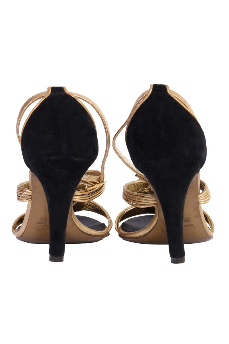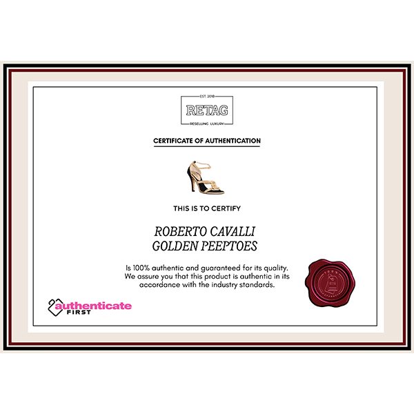 ROBERTO CAVALLI GOLDEN PEEPTOES comes in this stunning Golden color. It falls under our Good Condition Category. No visible wear and tear or fading can be seen.