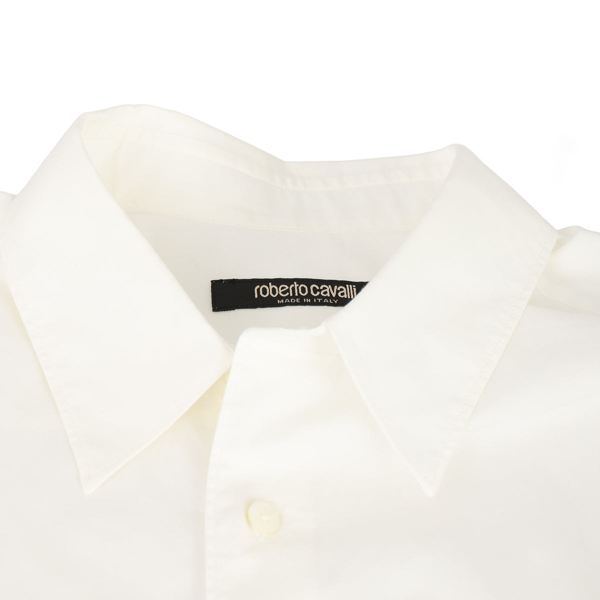 Roberto Cavalli Size EU 50 white RC logo shirt in a stunning white colour. This item falls under our Pristine Condition category. No visible wear, tear, or fading can be seen.