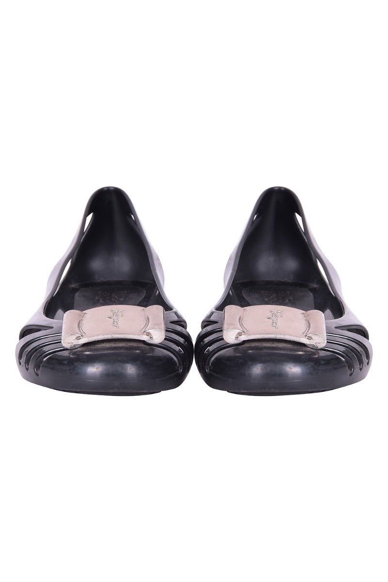 Salvatore Ferragamo Bermuda Sandals comes in this stunning Black color. It falls under our Pristine Condition Category. No visible wear and tear or fading can be seen.
