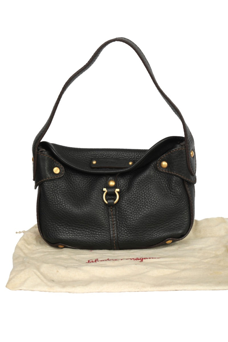 Salvatore Ferragamo Black Gancini Hobo Bag comes in this Stunning BLACK color. It falls under our PRISTINE Condition Category. No visible wear and tear or fading can be seen.