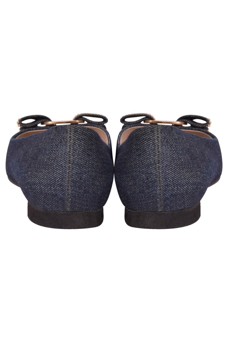 Salvatore Ferragamo Denim Fabric Studded Vara Bow Ballerinas comes in this stunning Dark Blue color. It falls under our Pristine Condition Category. No visible wear and tear or fading can be seen