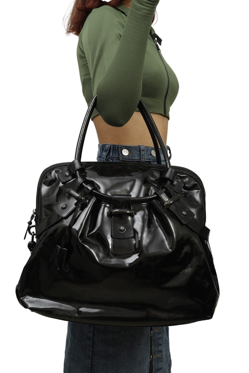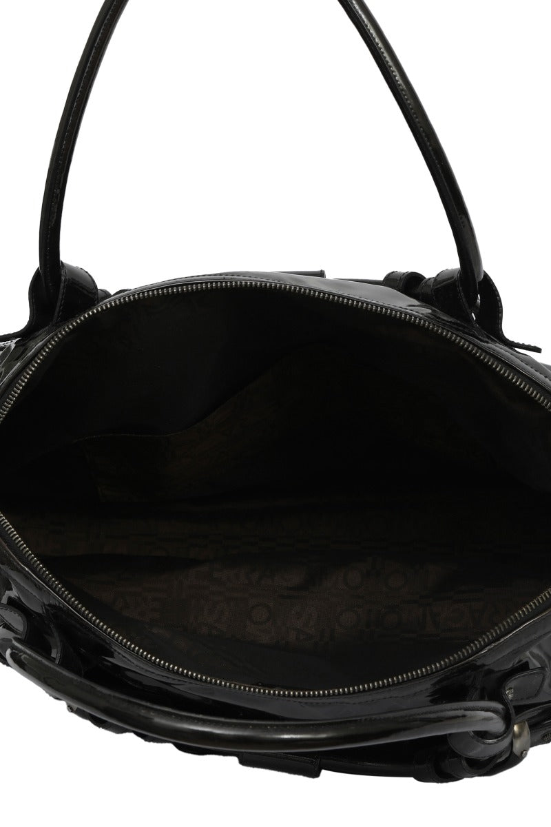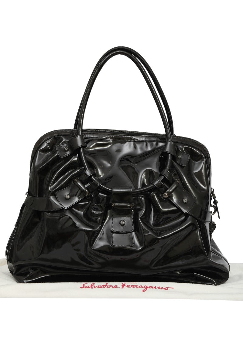 Salvatore Ferragamo Douglas Patent Leather Bag comes in this Stunning Black color .It falls under our Pristine Condition Category. No visible wear and tear or fading can be seen.