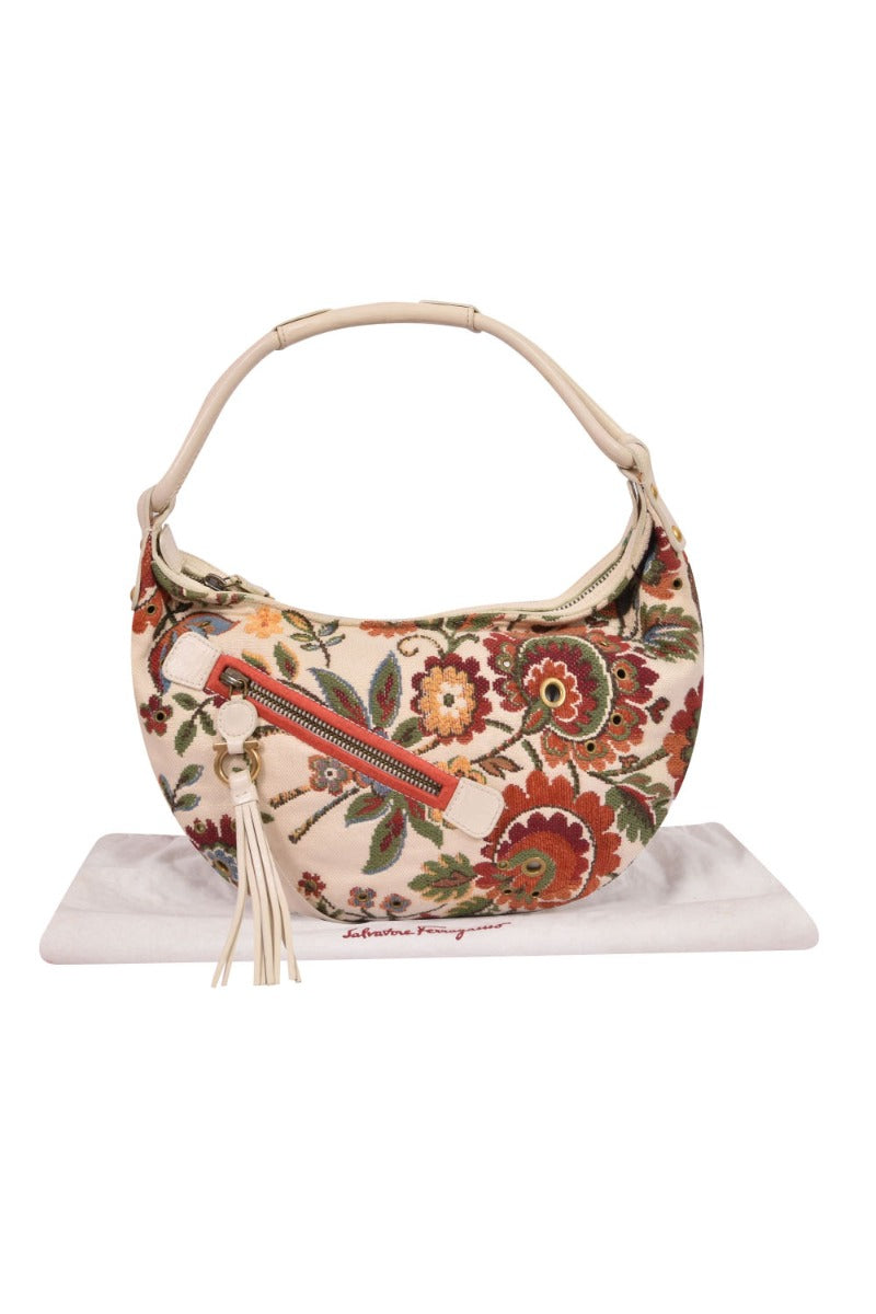 Salvatore Ferragamo Floral Weaved Hobo Bag comes in this Stunning White color .It falls under our Pristine Condition Category. No visible wear and tear or fading can be seen