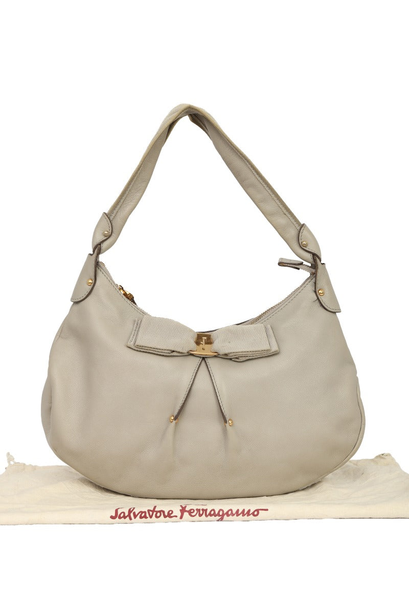 SALVATORE FERRAGAMO GREY VARA RIBBON SHOULDER BAGcomes in this Stunning Graycolor .It falls under our Pristine Condition Category. No visible wear and tear or fading can be seen.