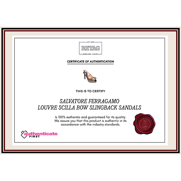 SALAVTORE FERRAGAMO LOUVRE SCILLA BOW SLINGBACK SANDALS Comes in this stunning Black color. It falls under our Never Been Used Condition Category. No visible wear and tear or fading can be seen.