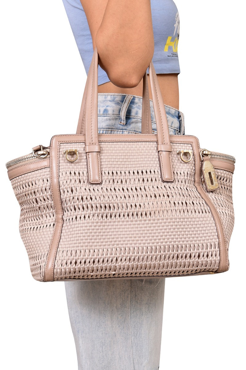 Salvatore Ferragamo Nylon Exterior Beige Handbagcomes in this Stunning Beige color .It falls under our Like New Condition Category. No visible wear and tear or fading can be seen.