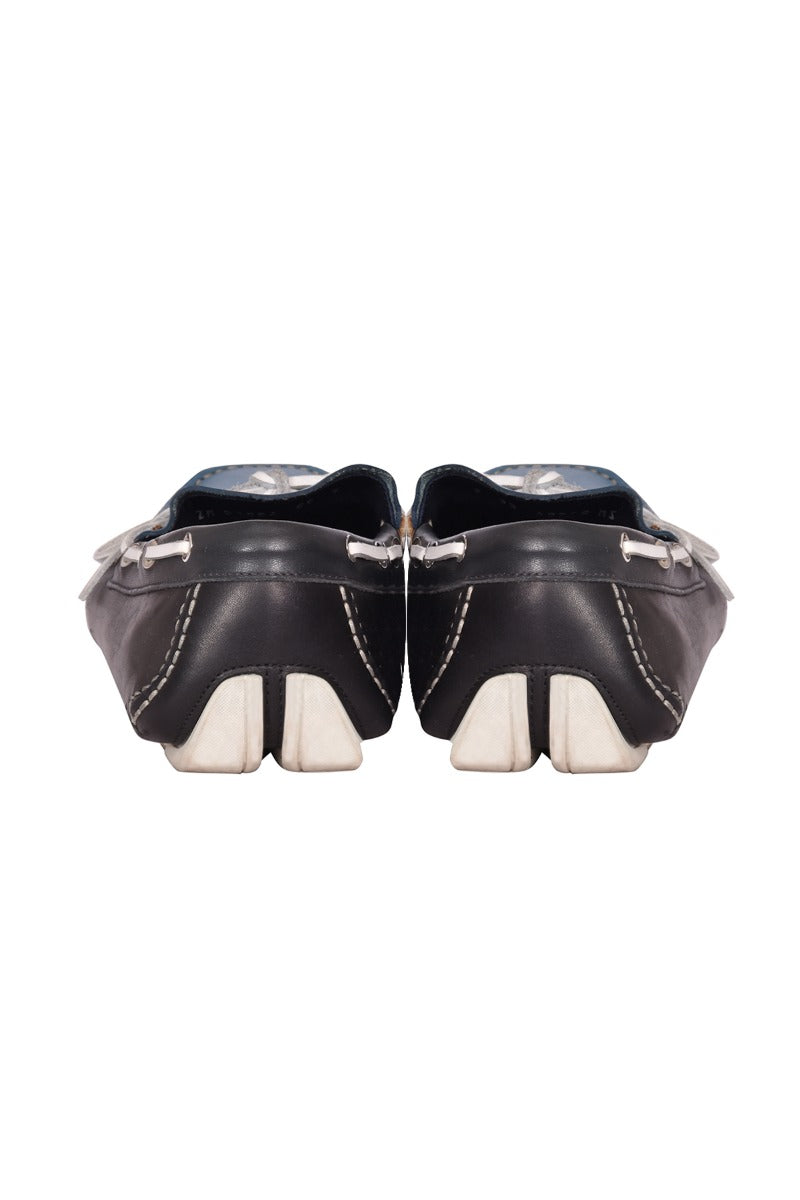 Salvatore Ferragamo Tricolor Calfskin Boat Shoe Driver Loafers comes in this stunning Blue color. It falls under our Pristine Condition Category. No visible wear and tear or fading can be seen.