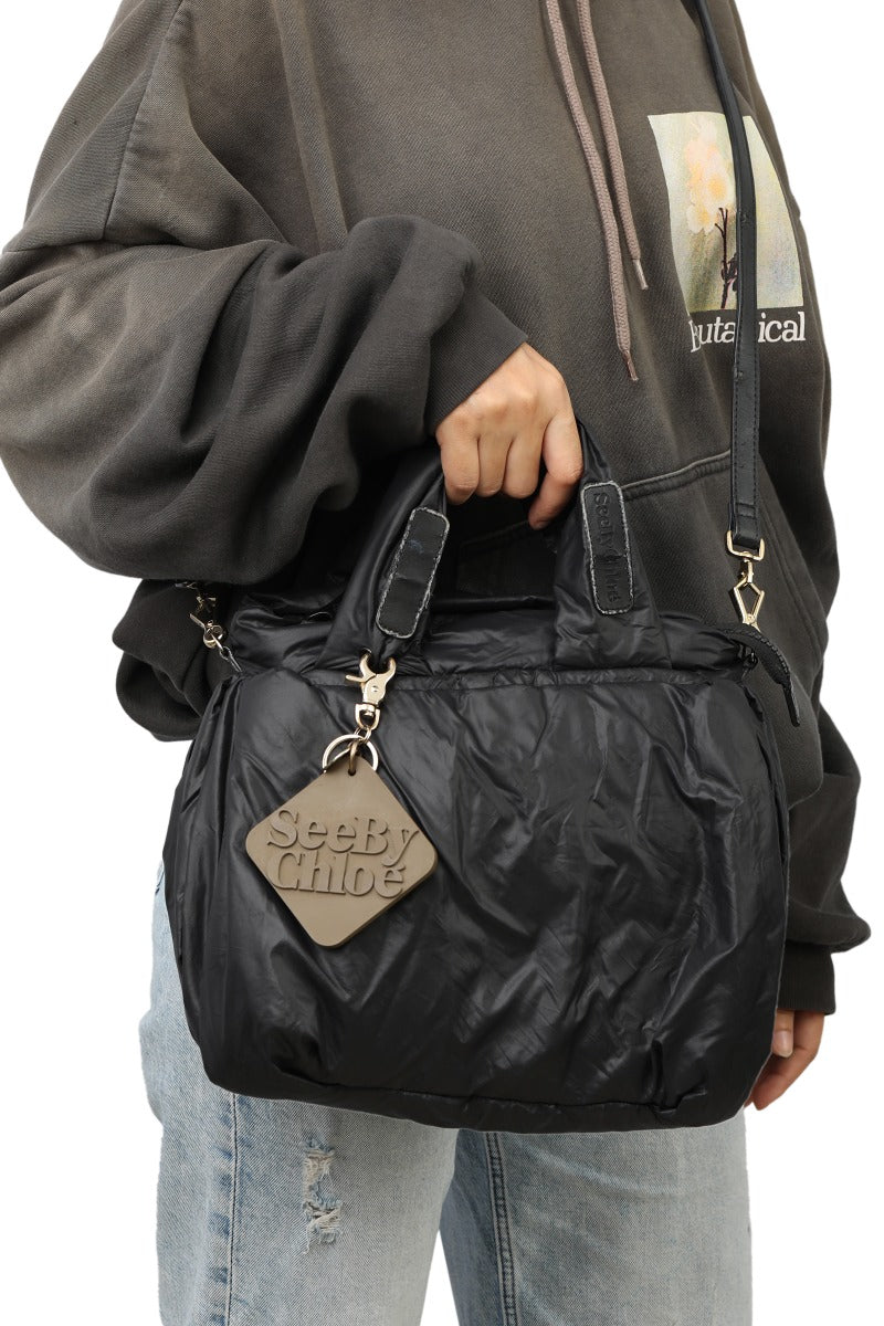 See by Chole Black Fluffy Tote Bag comes in this Stunning Black color .It falls under our Like New Condition Category