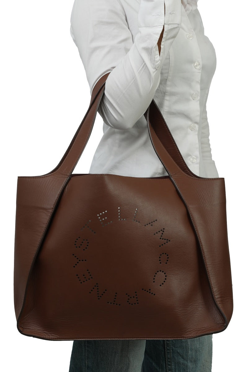 Stella McCartney Cinamon Logo Leather Tote Bag comes in this Stunning Cinamon Brown color .It falls under our Pristine Condition Category. No visible wear and tear or fading can be seen.