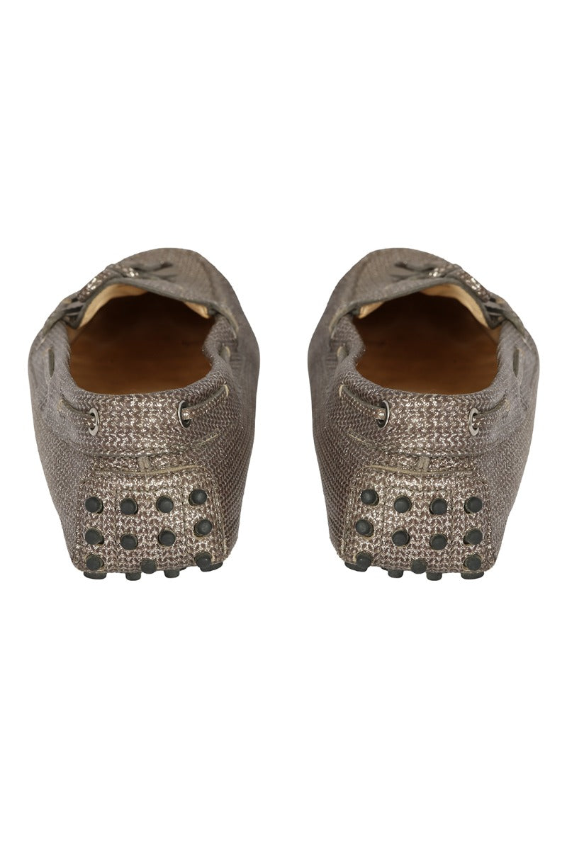 TOD'S SIZE- EU 38.5 GREY/SILVER GLITTER LEATHER SLIP-ON LOAFERS comes in this stunning Metallic Silver color. It falls under our Pristine Condition Category