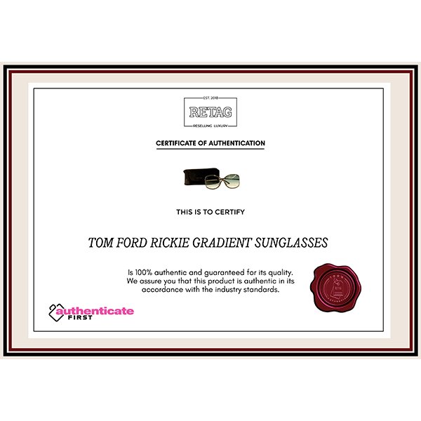 TOM FORD RICKIE GRADIENT SUNGLASSES comes in this Stunning Black color. It falls under our Pristine condition category. No visible wear & tear or fading can be seen. Few un noticeable scratches may be seen.
