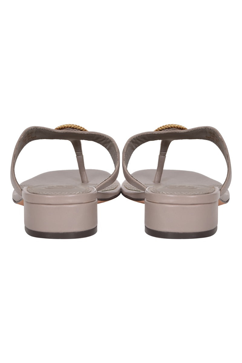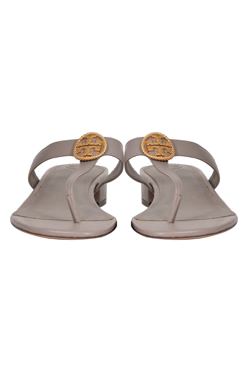 Tory Burch Benton Thong Sandals comes in this stunning Gray color. It falls under our Never Been Used Condition Category. No visible wear and tear or fading can be seen