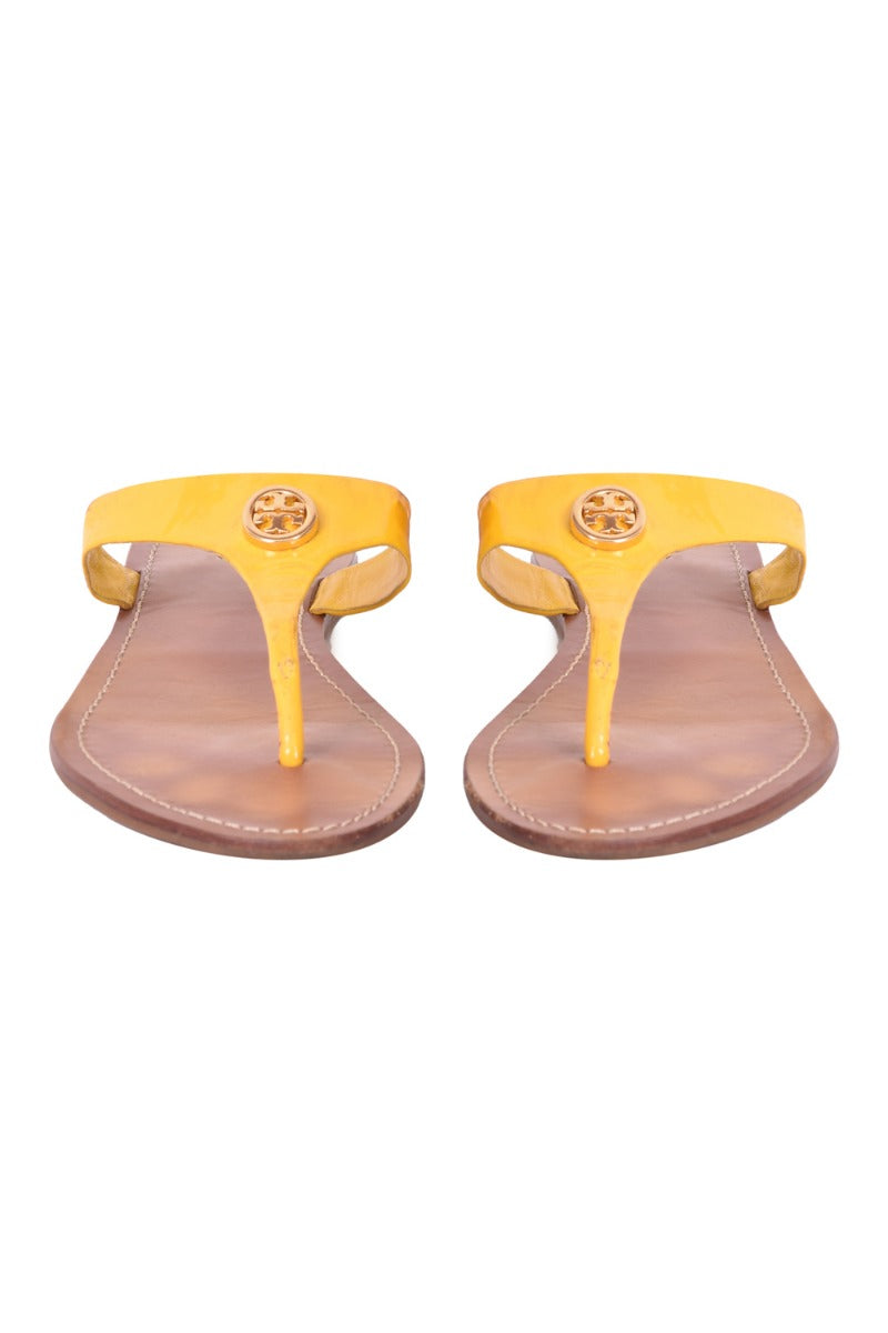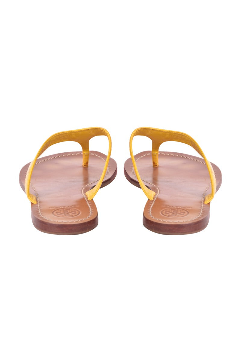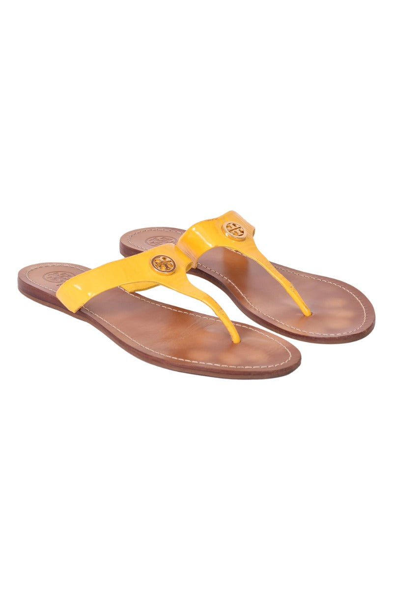 Tory Burch Cameron Thong Sandals comes in this stunning Yellow color. It falls under our Good Condition Category. No visible wear and tear or fading can be seen