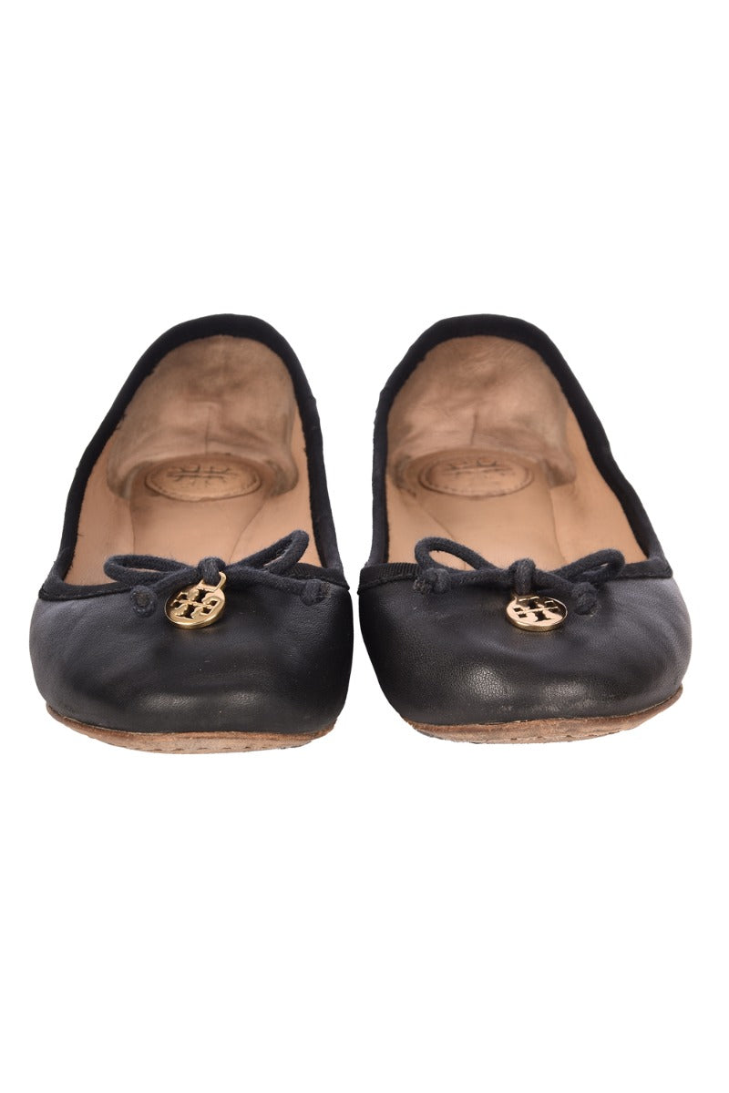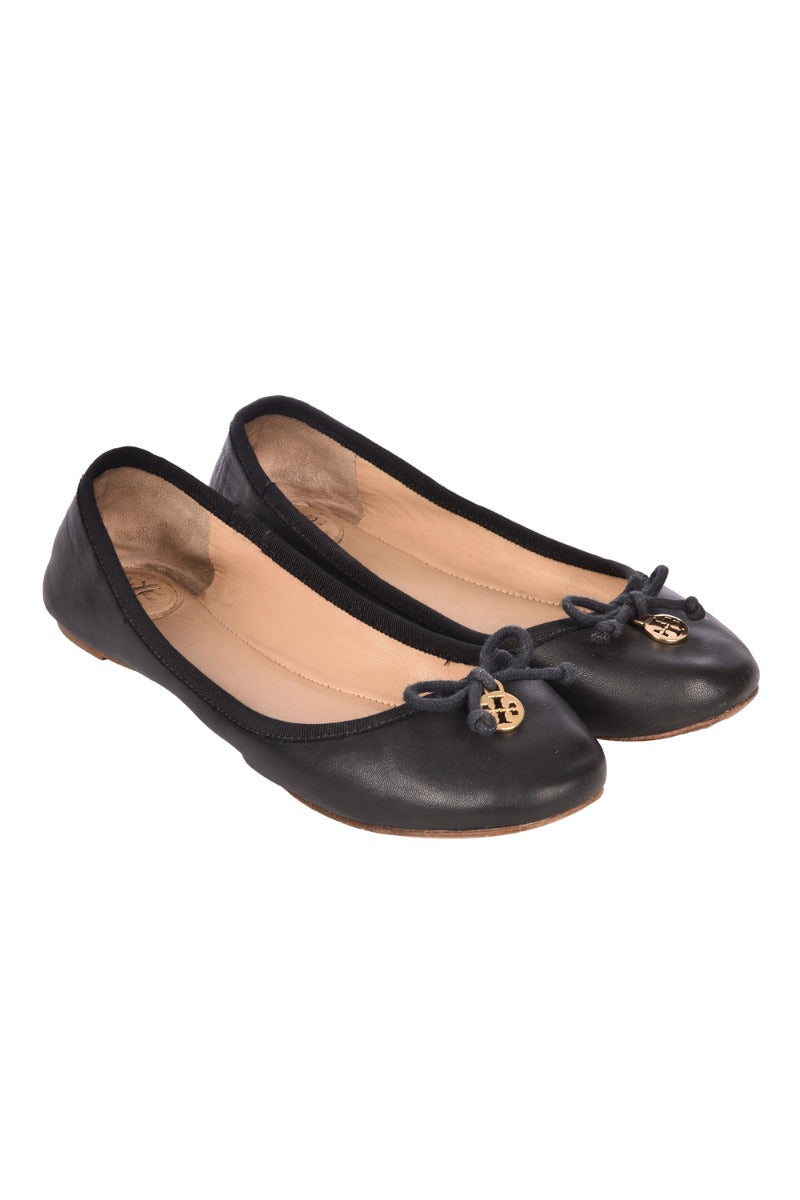 TORY BURCH CHELSEA BOW LOGO BALLET FLATS comes in this stunning Black color. It falls under our Good Condition Category. No visible wear and tear or fading can be seen.