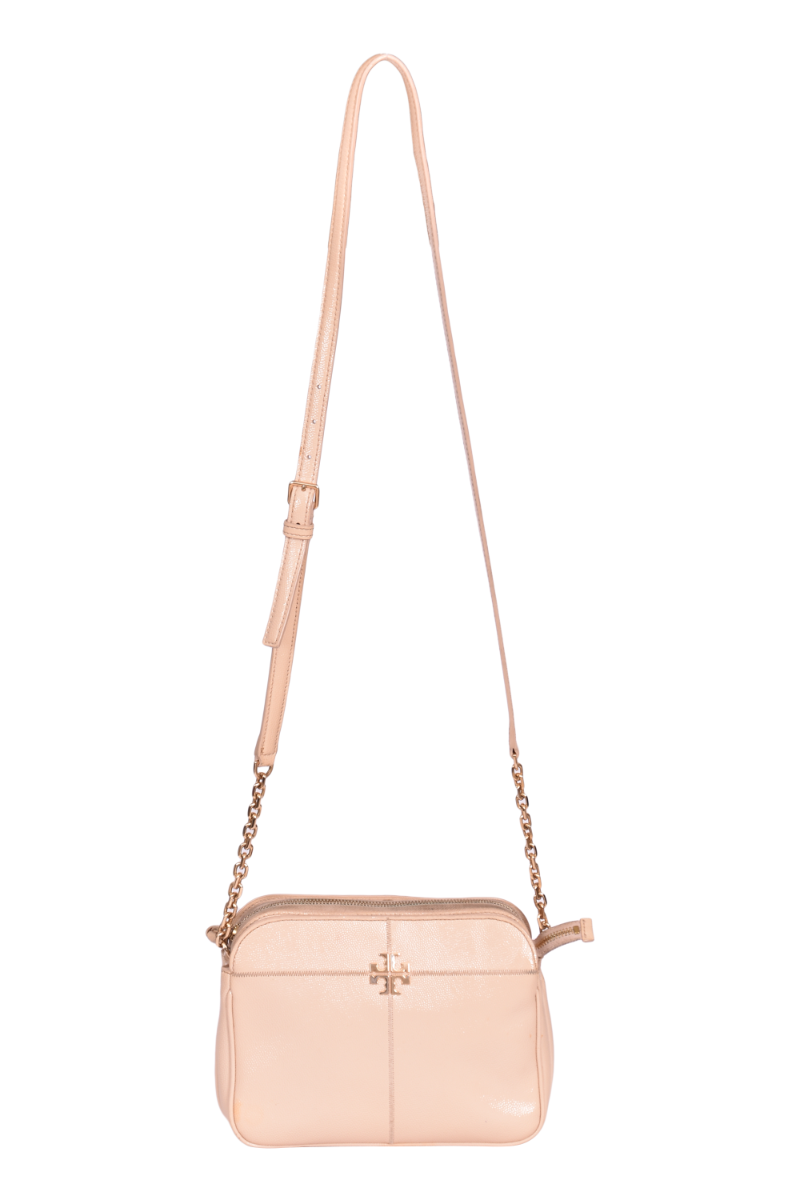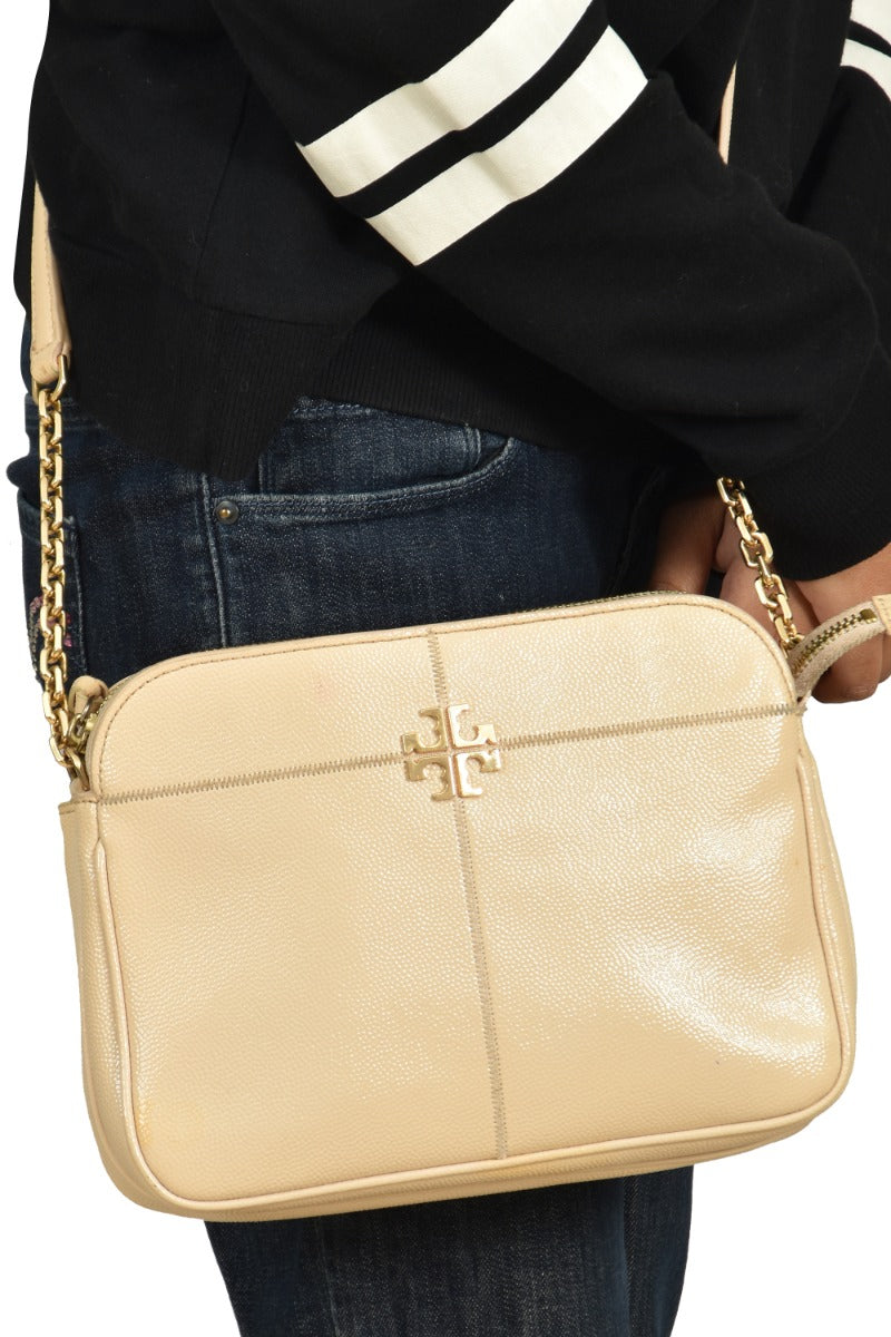 Tory Burch Ivy Leather Beige Crossbody Bag comes in this Stunning Beige color .It falls under our Pristine Condition Category. No visible wear and tear or fading can be seen